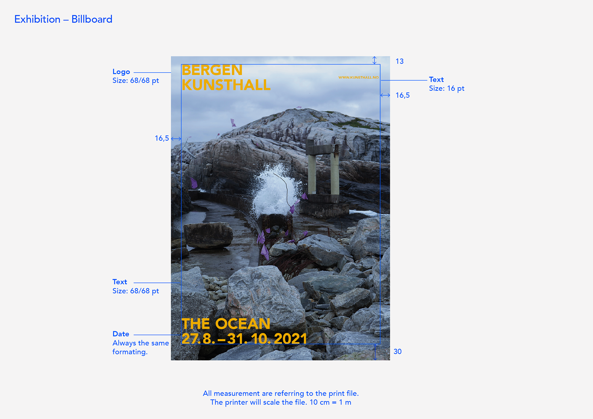 The print house will scale the file. 10 cm = 1.cm